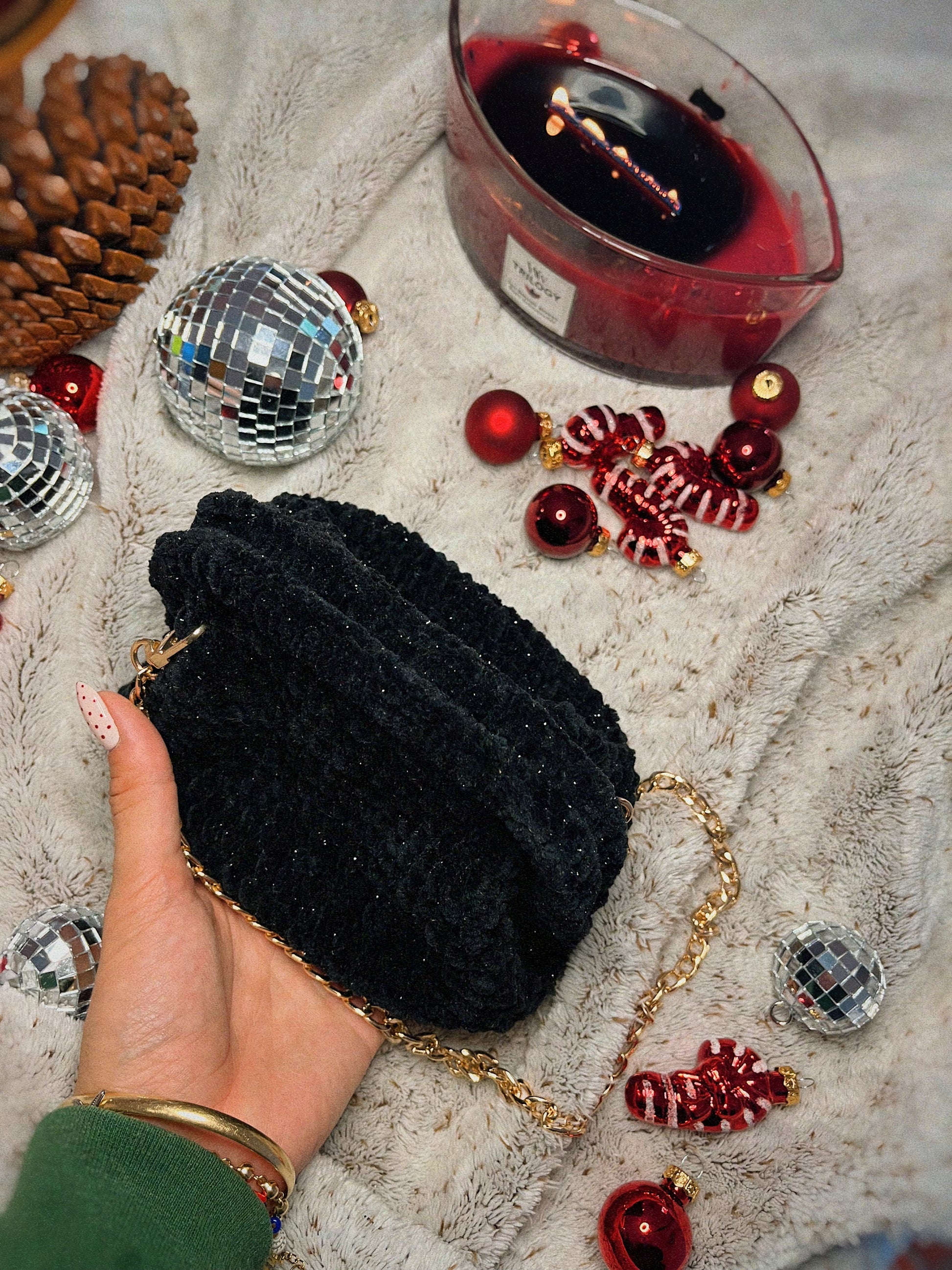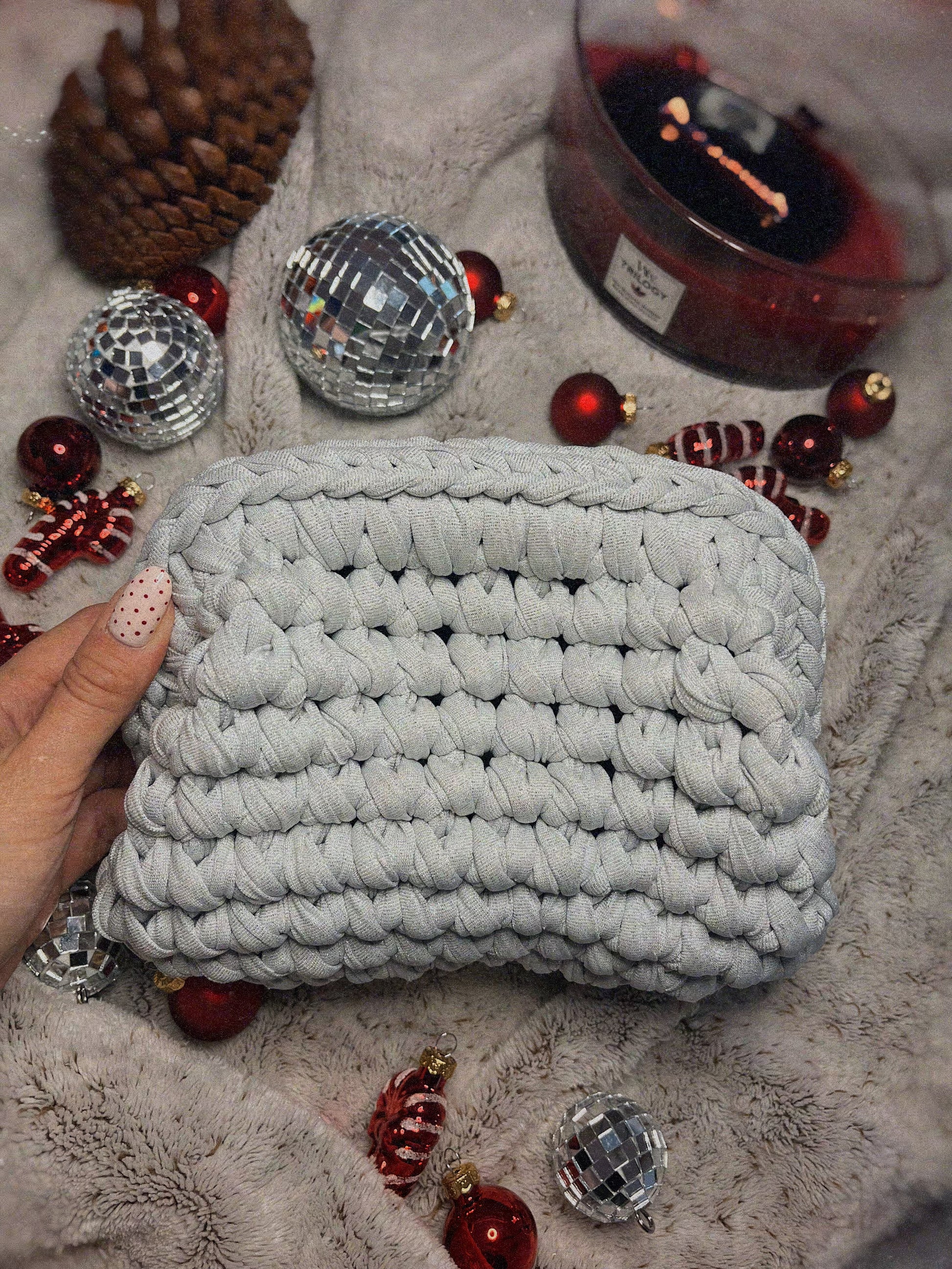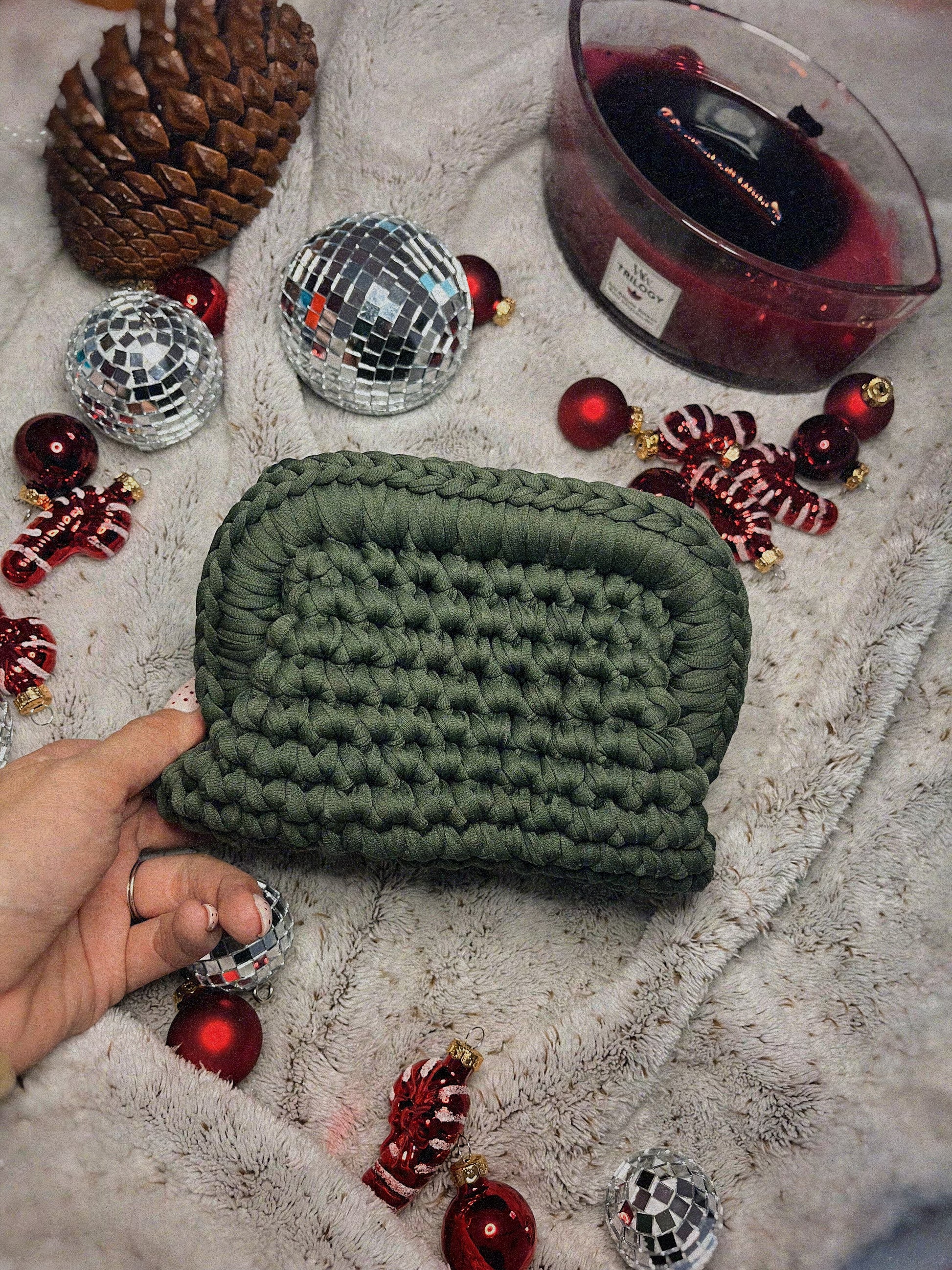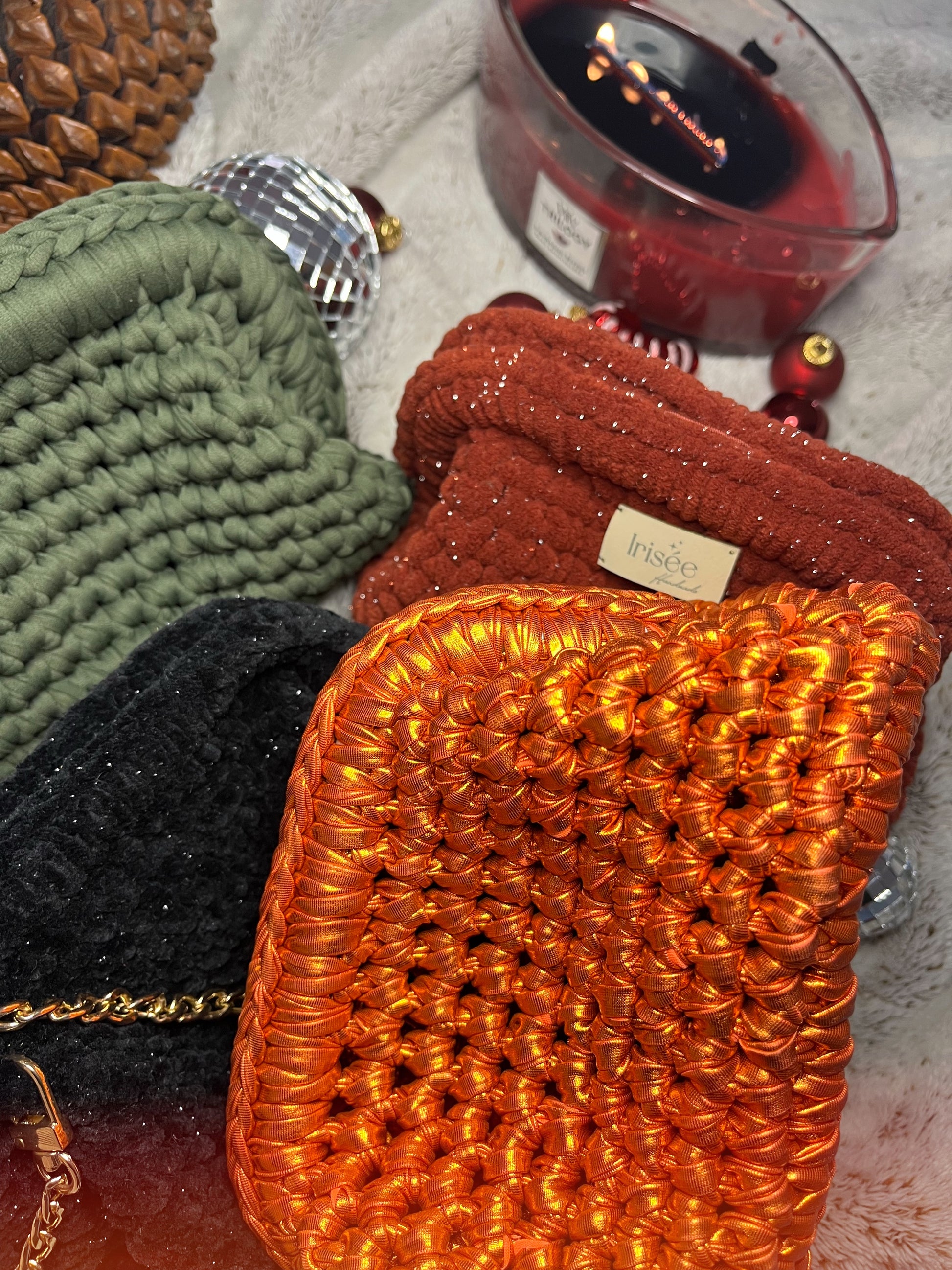 Chaque modèle est unique, réalisé en fil chenille ou fil recyclé, avec une chaîne amovible si tu veux le porter en bandoulière ou juste à la main.